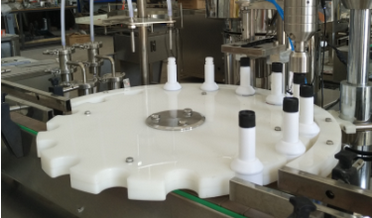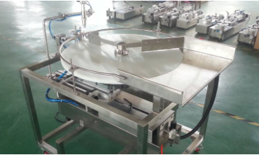 Ini memberi makan botol ke mesin pengisian satu per satu.