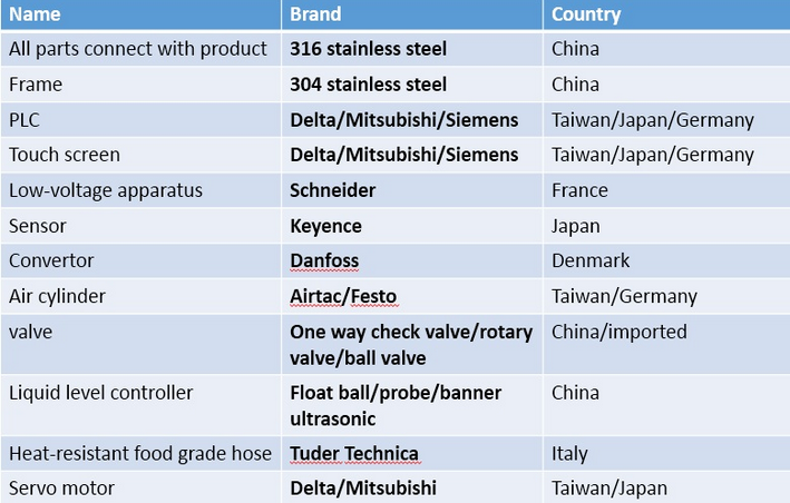 1. Bahan dari semua bagian yang mengalir melalui produk dapat dilengkapi sesuai dengan karakter produk, sehingga bahan tersebut ideal untuk mengisi sebagian besar produk korosif yang kuat.